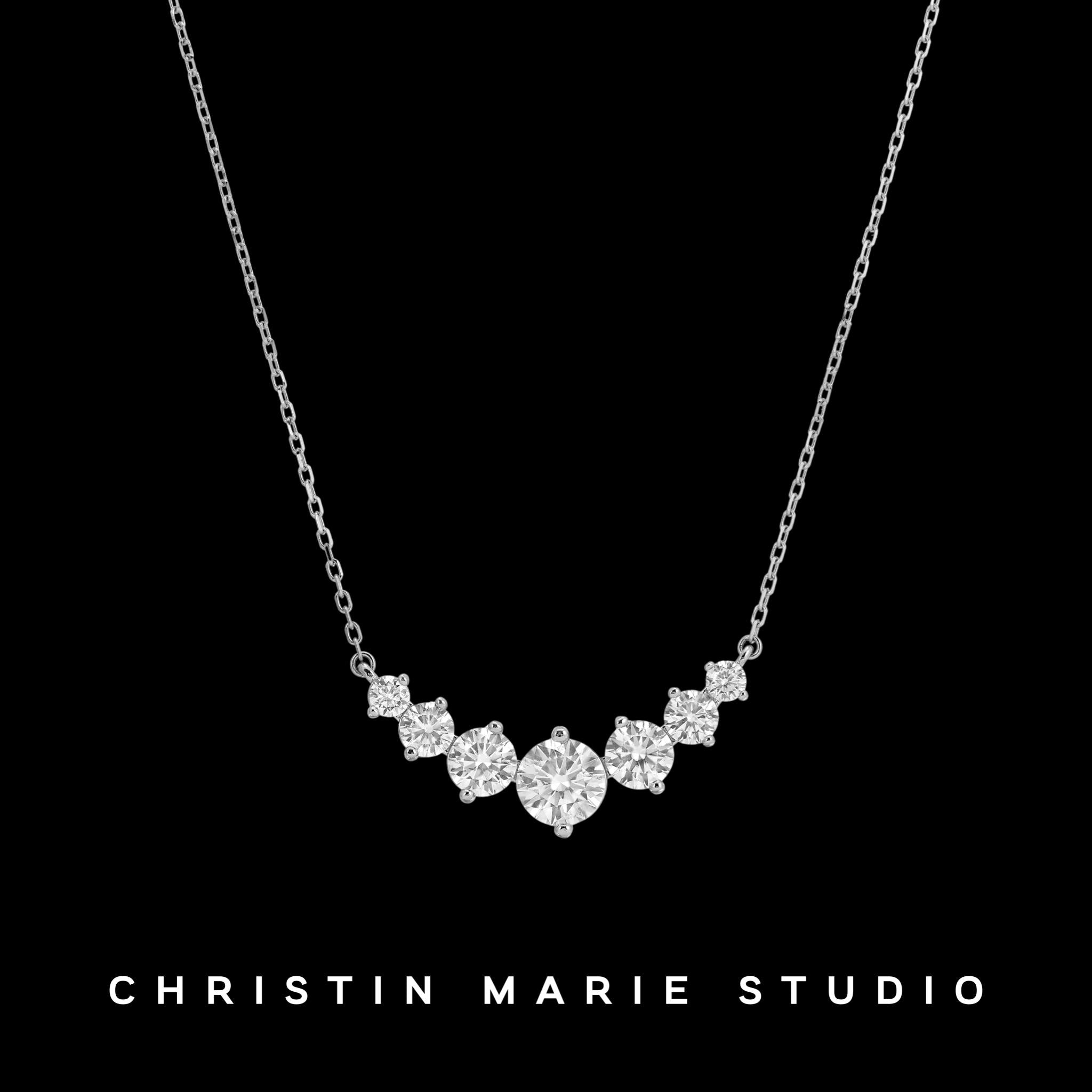 Elevate your style with the 7 Stone Moissanite Row Necklace. Crafted from 925 silver, this necklace features white gold plating for a luxurious finish. 🌟