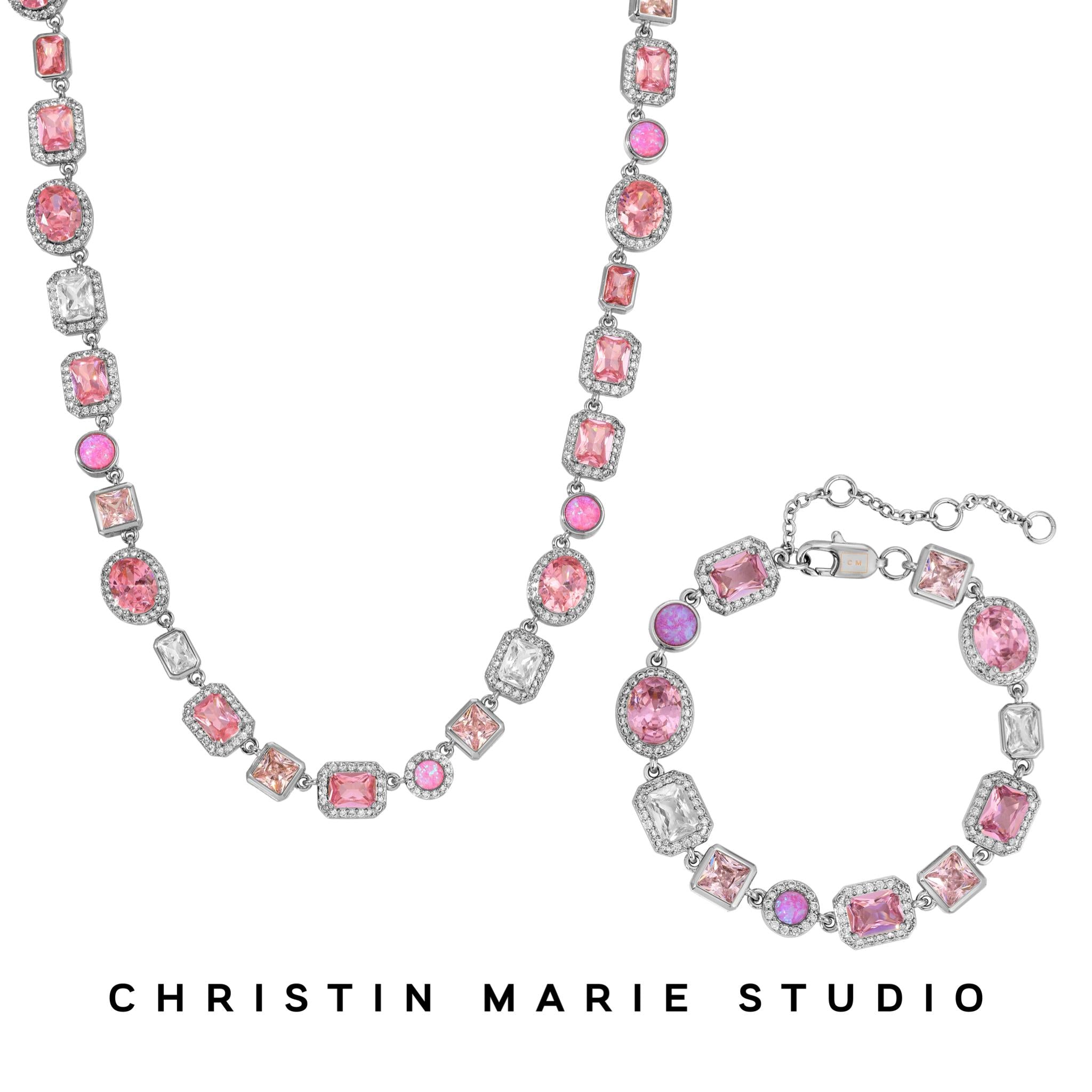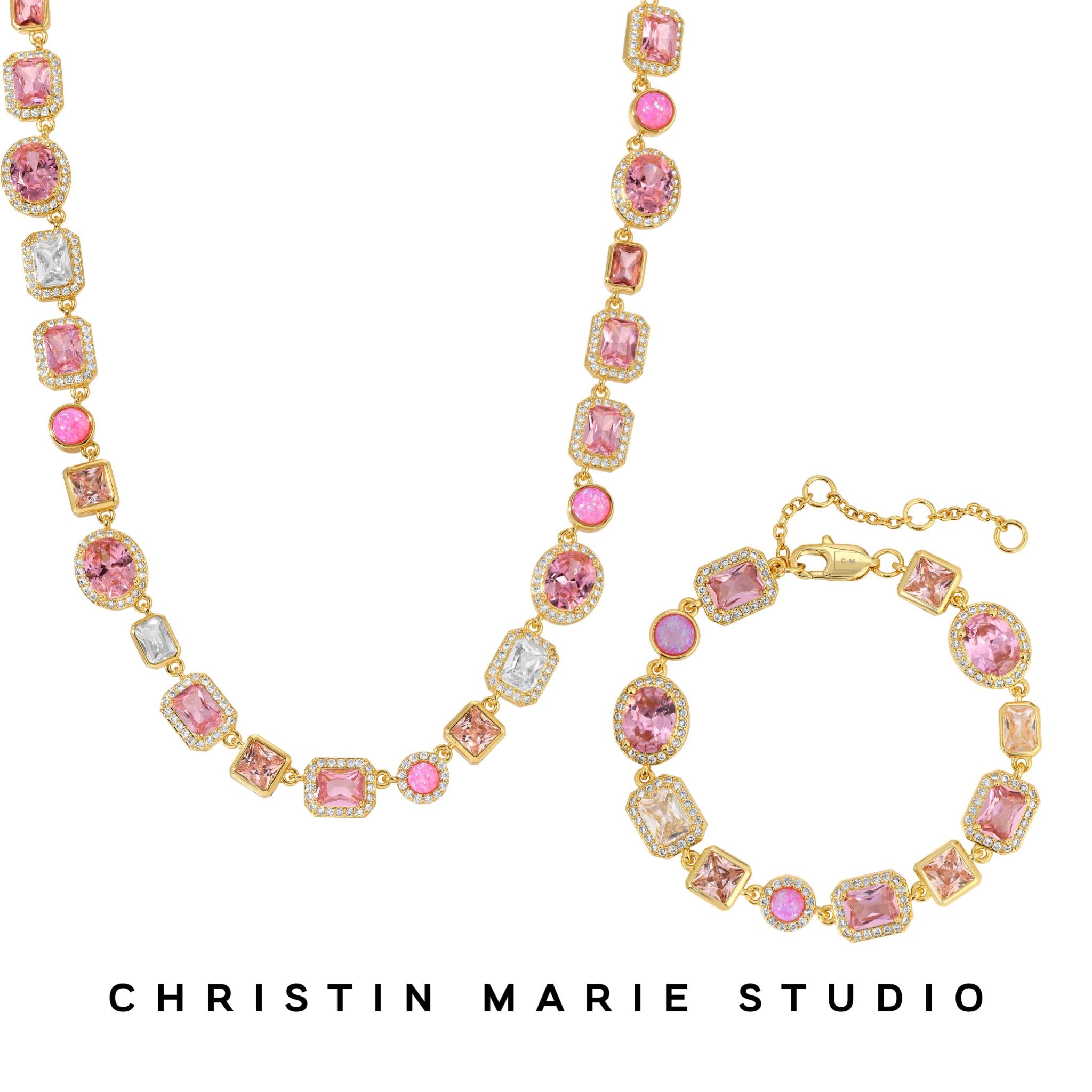 The most awaited addition to our Solstice Gemstone collection. An exclusive piece that epitomizes luxury and sophistication. This piece features an array of pink toned gemstones and pink opals meticulously placed to showcase the gems' natural brilliance. Great for individual wear and also a great statement piece for layering.