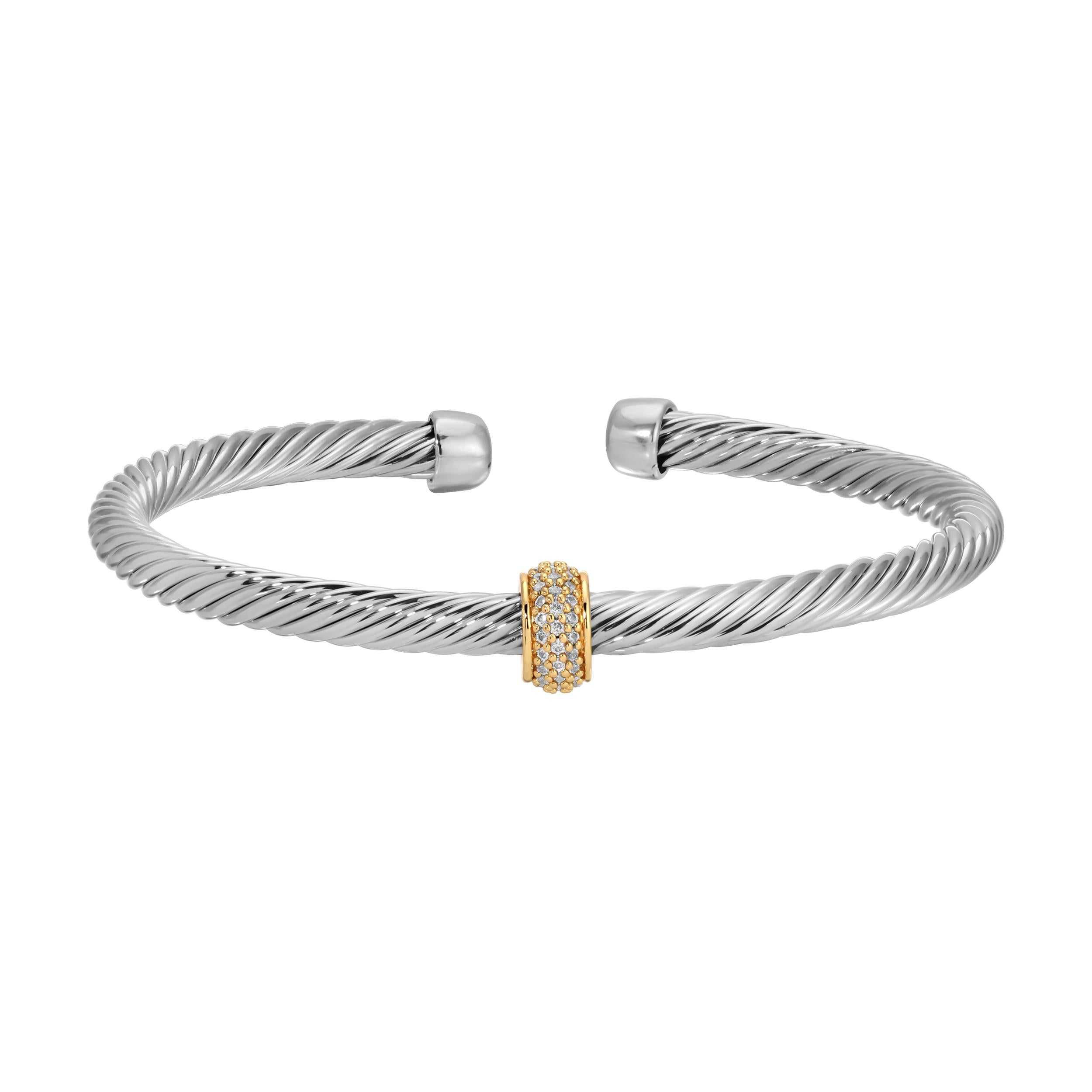 The Cable Bracelet features a sleek cable design, crafted from 18k gold plated over stainless steel. This combination offers a luxurious look with a flexible fit. Perfect for those who appreciate both style and comfort.