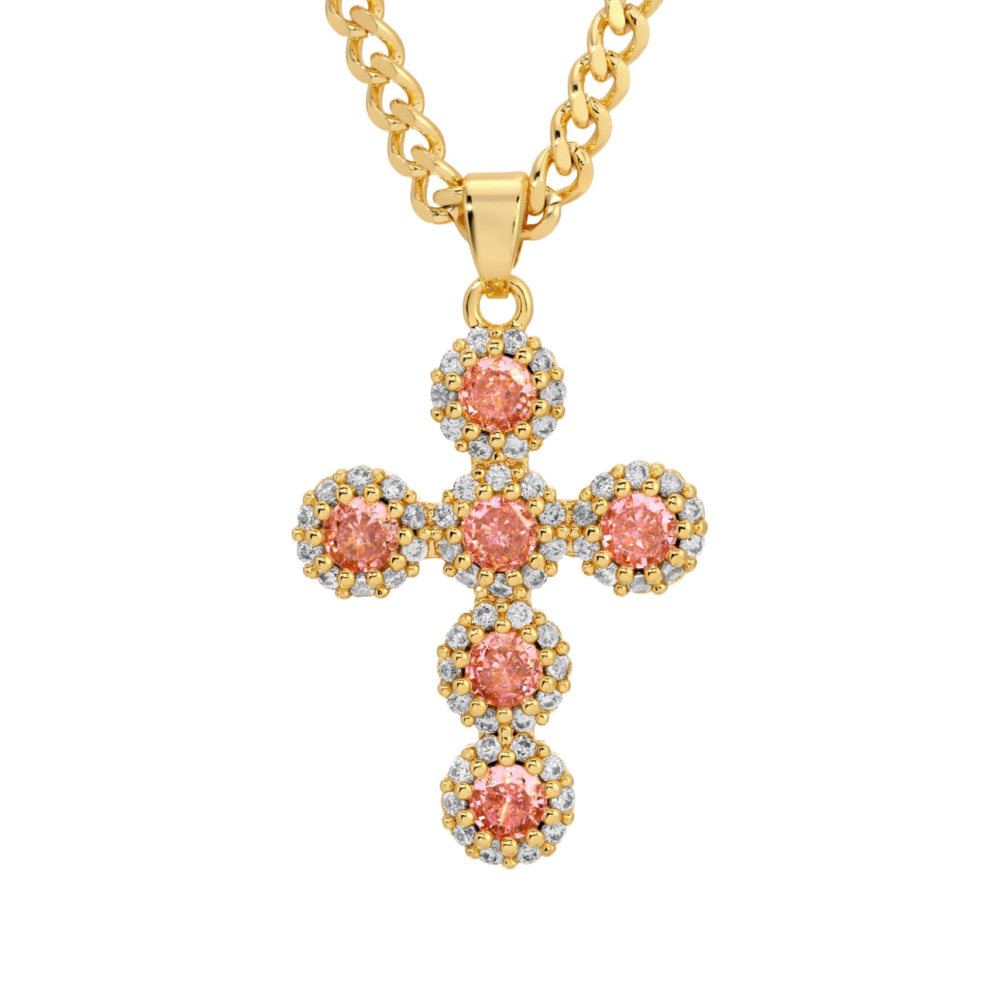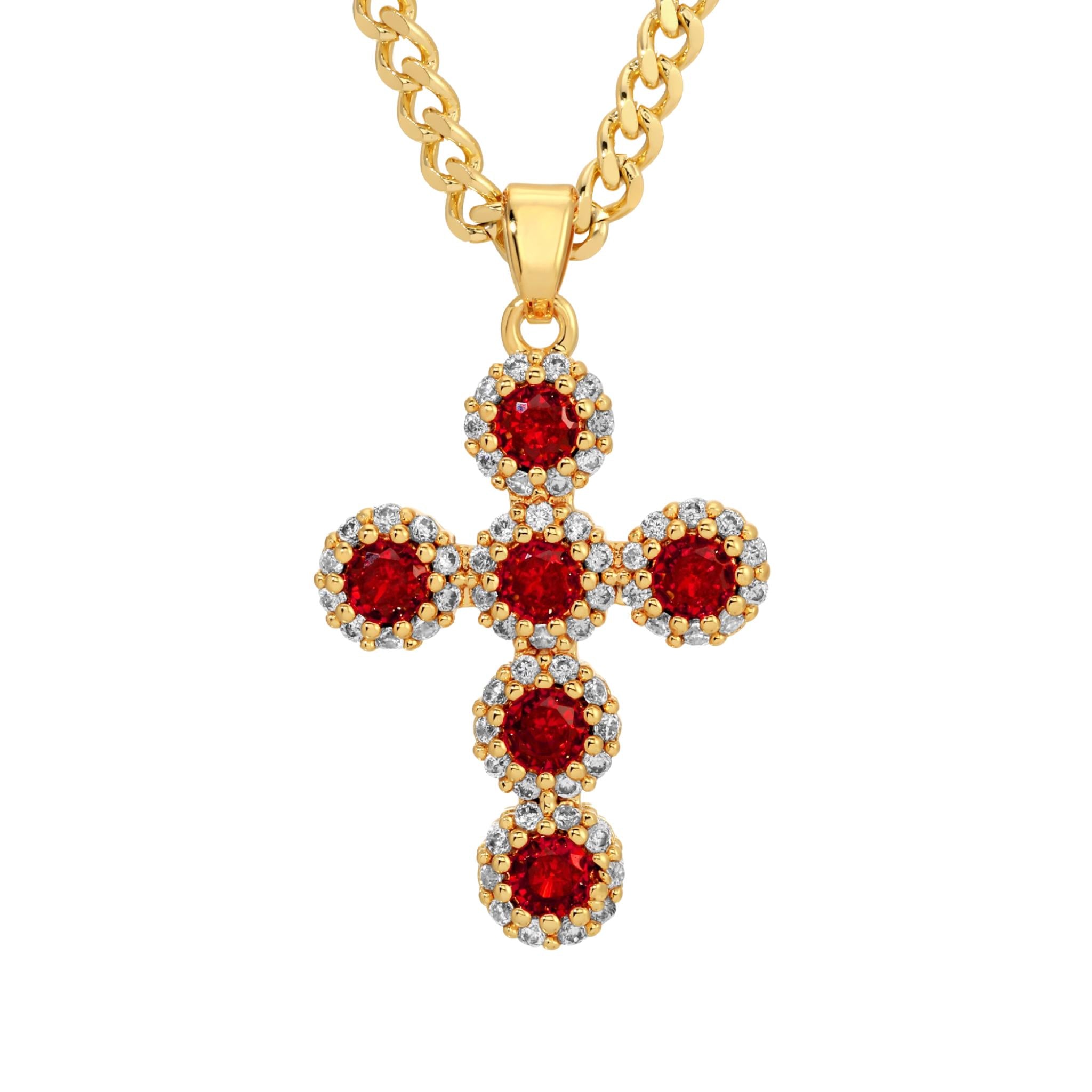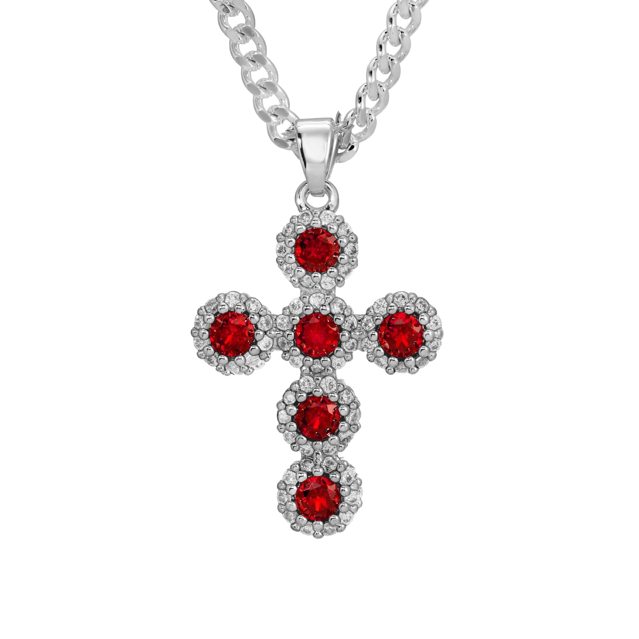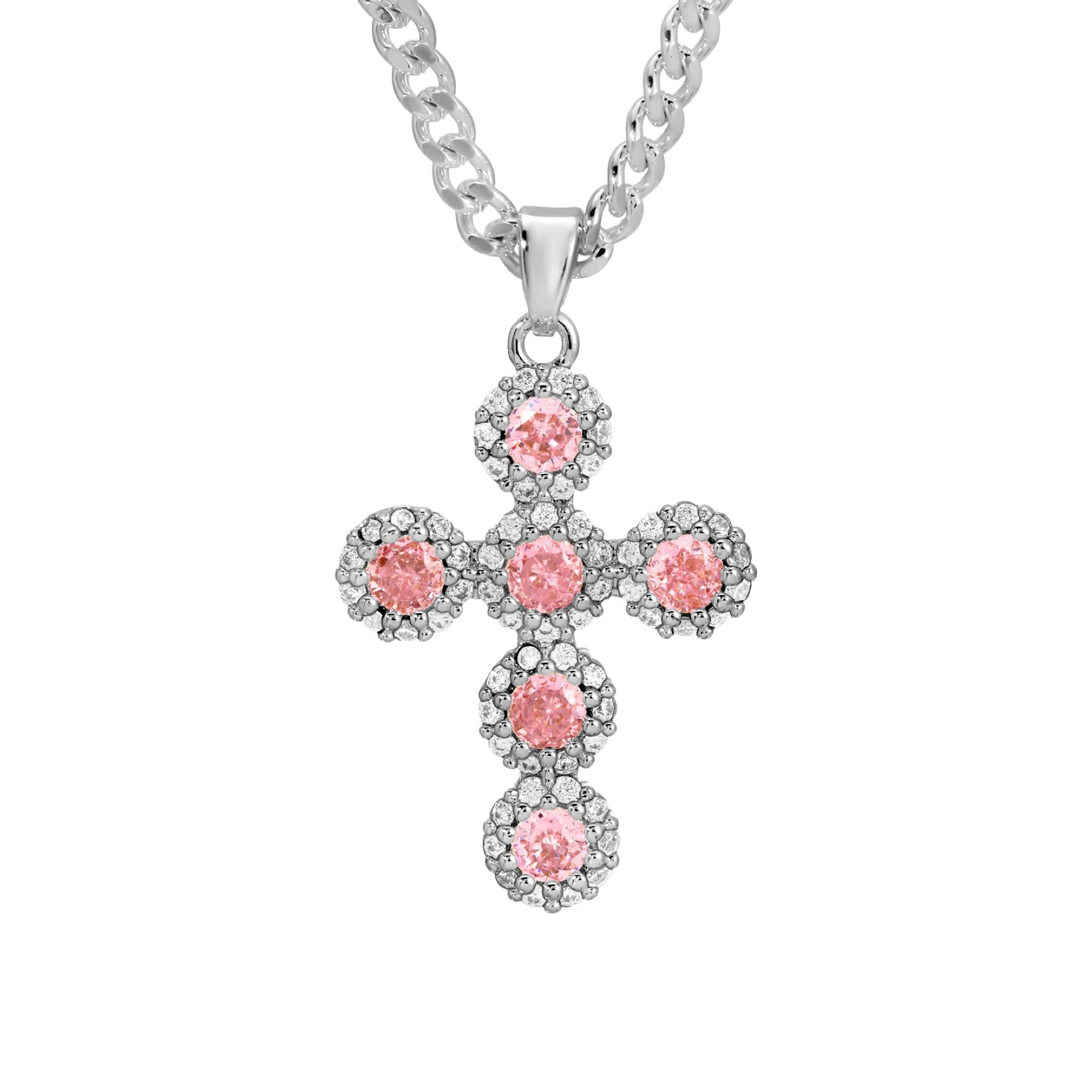 - Choose between a red or pink cz cross pendant. Each features intricate CZ details.