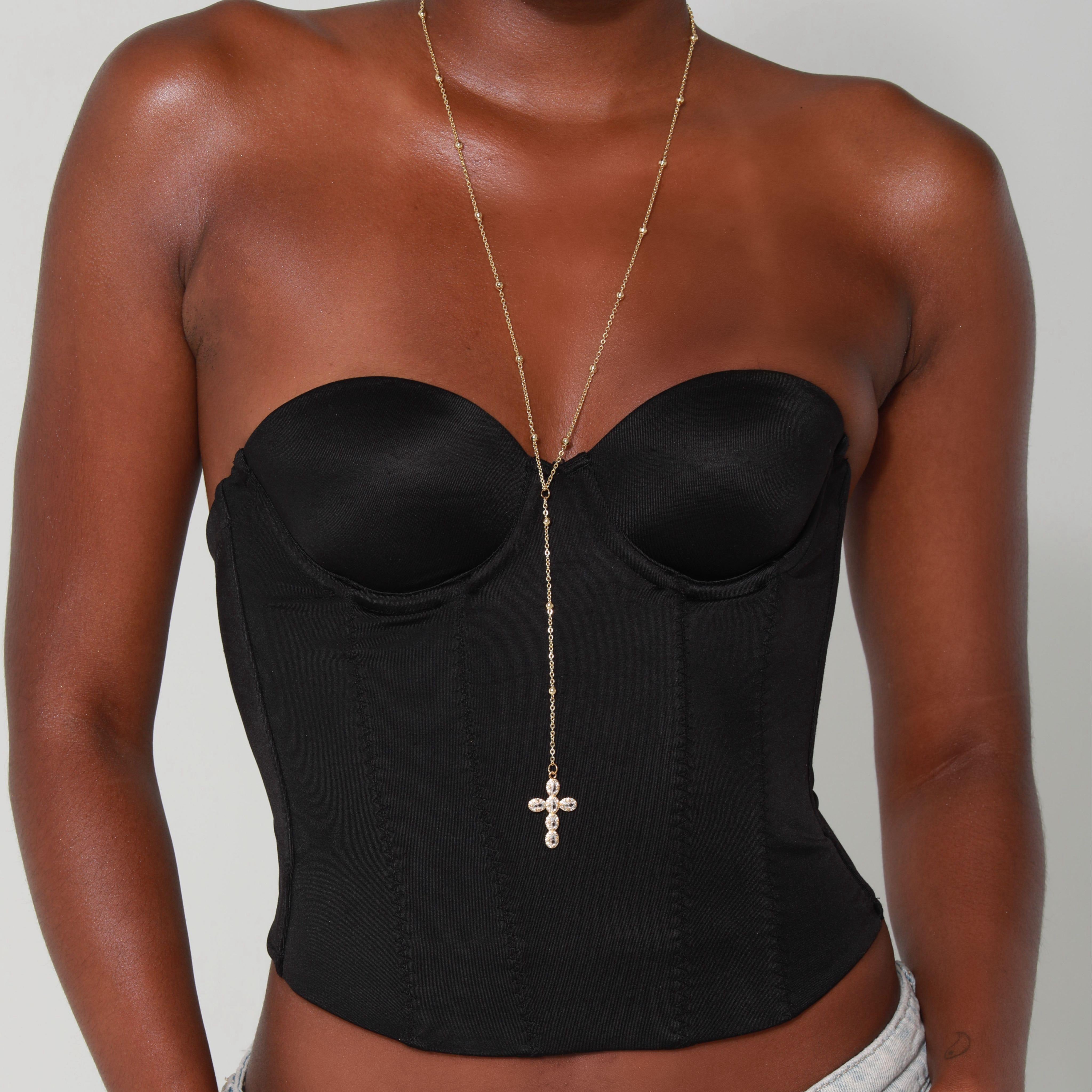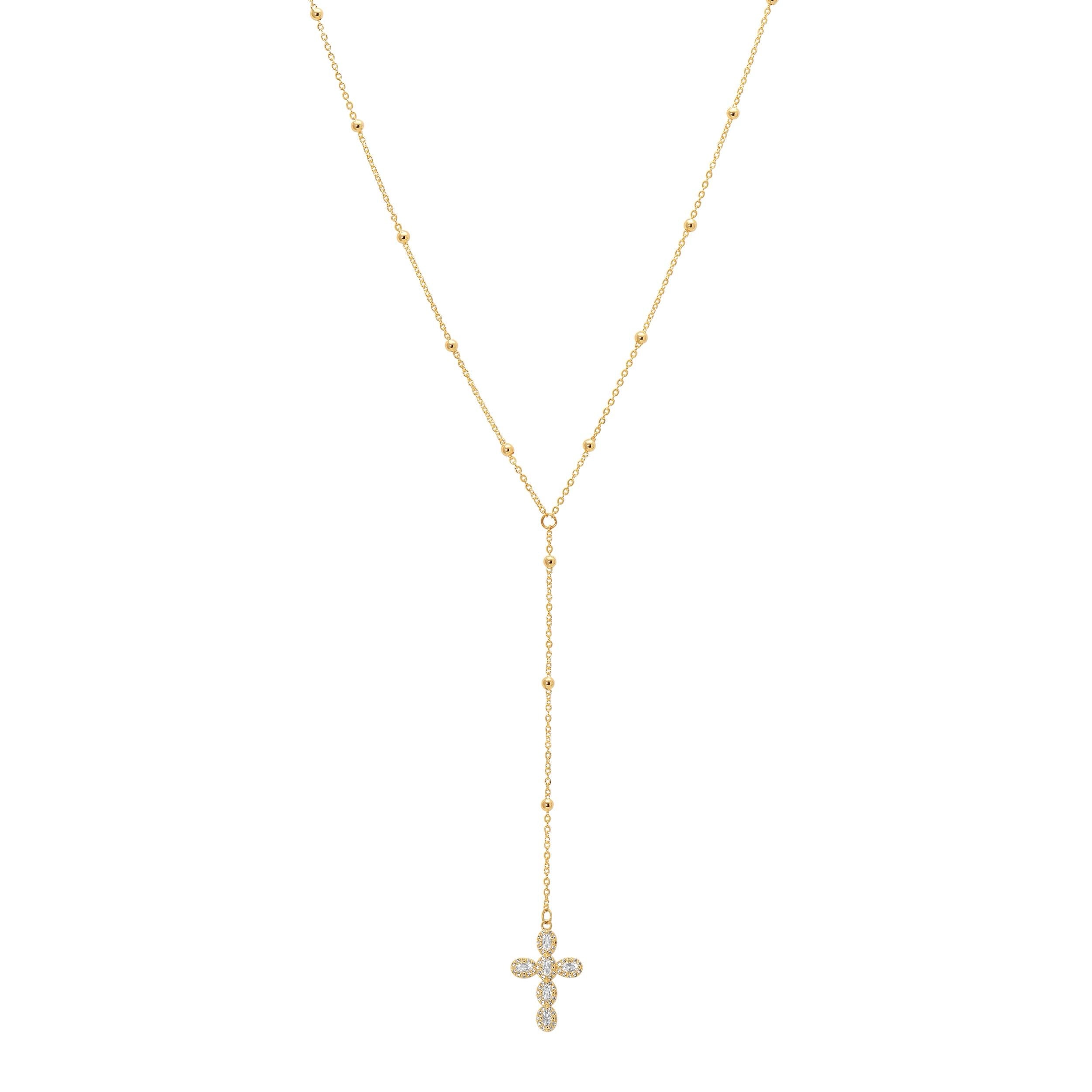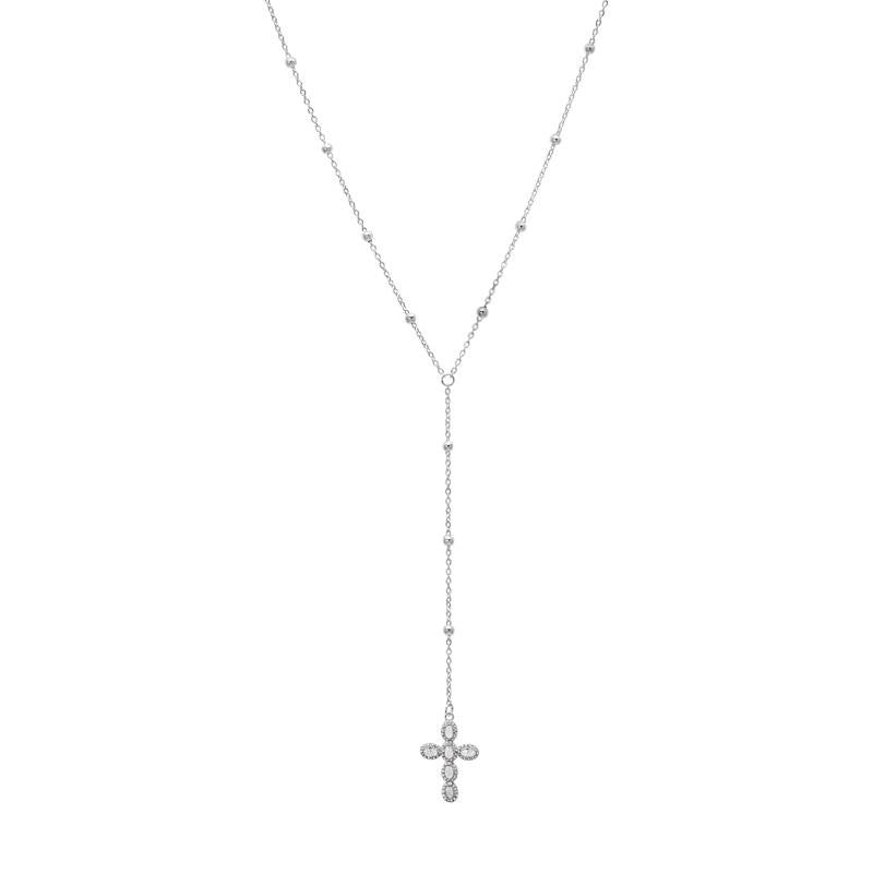 Rosary style necklace w/ ball chain and cubic zirconia cross.