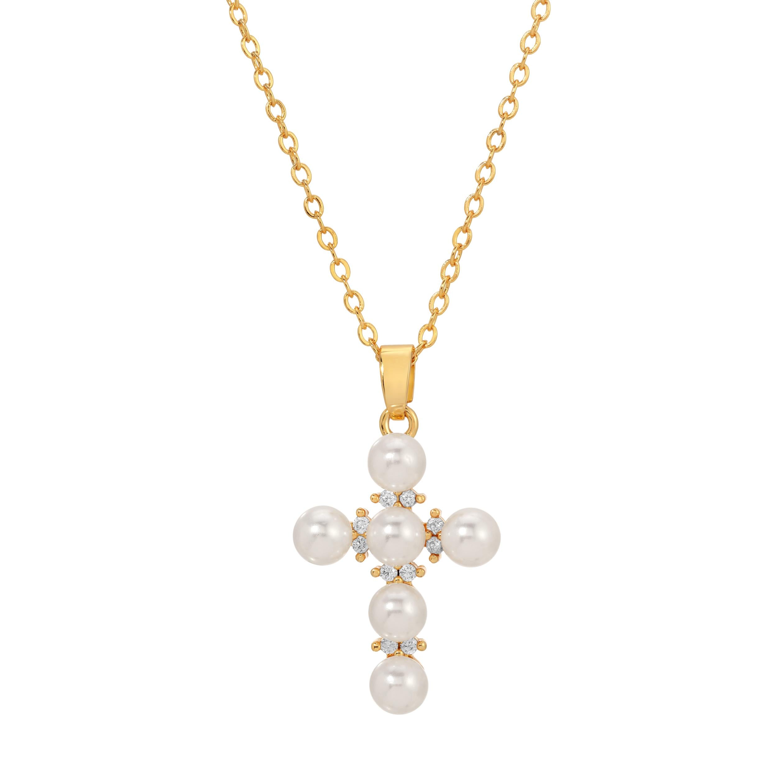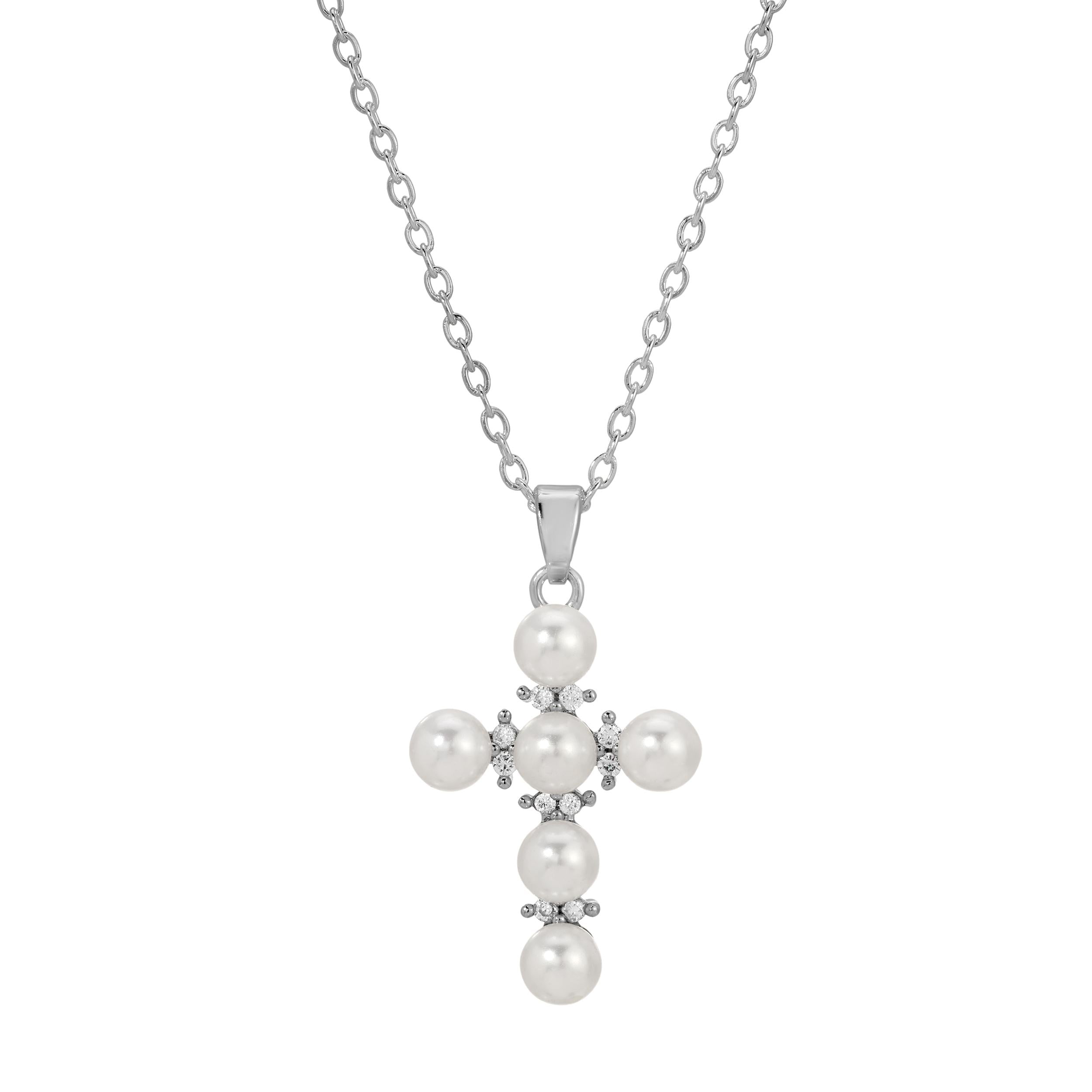 This necklace showcases a diamond cut cable chain with a pearl detail pendant. Plated in 18k gold and rhodium/platinum over brass, it features CZ stones for added sparkle. Perfect for any occasion, it combines sophistication with durability. The design is timeless and elegant.