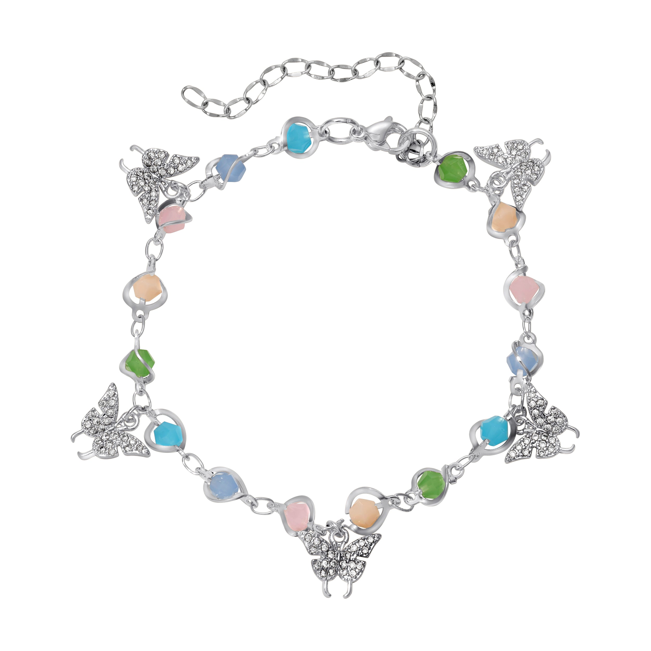 Sweet, soft, and full of whimsy—the Cotton Candy Butterfly Bracelet brings playful charm to your wrist. Featuring an array of pastel blue, green and pink stones with intricately placed gold butterflies that flutter with dreamy iridescence, this bracelet captures the magic of carefree days and colorful skies. Wear it solo for a delicate pop or layer it into your stack for that extra sprinkle of enchantment.