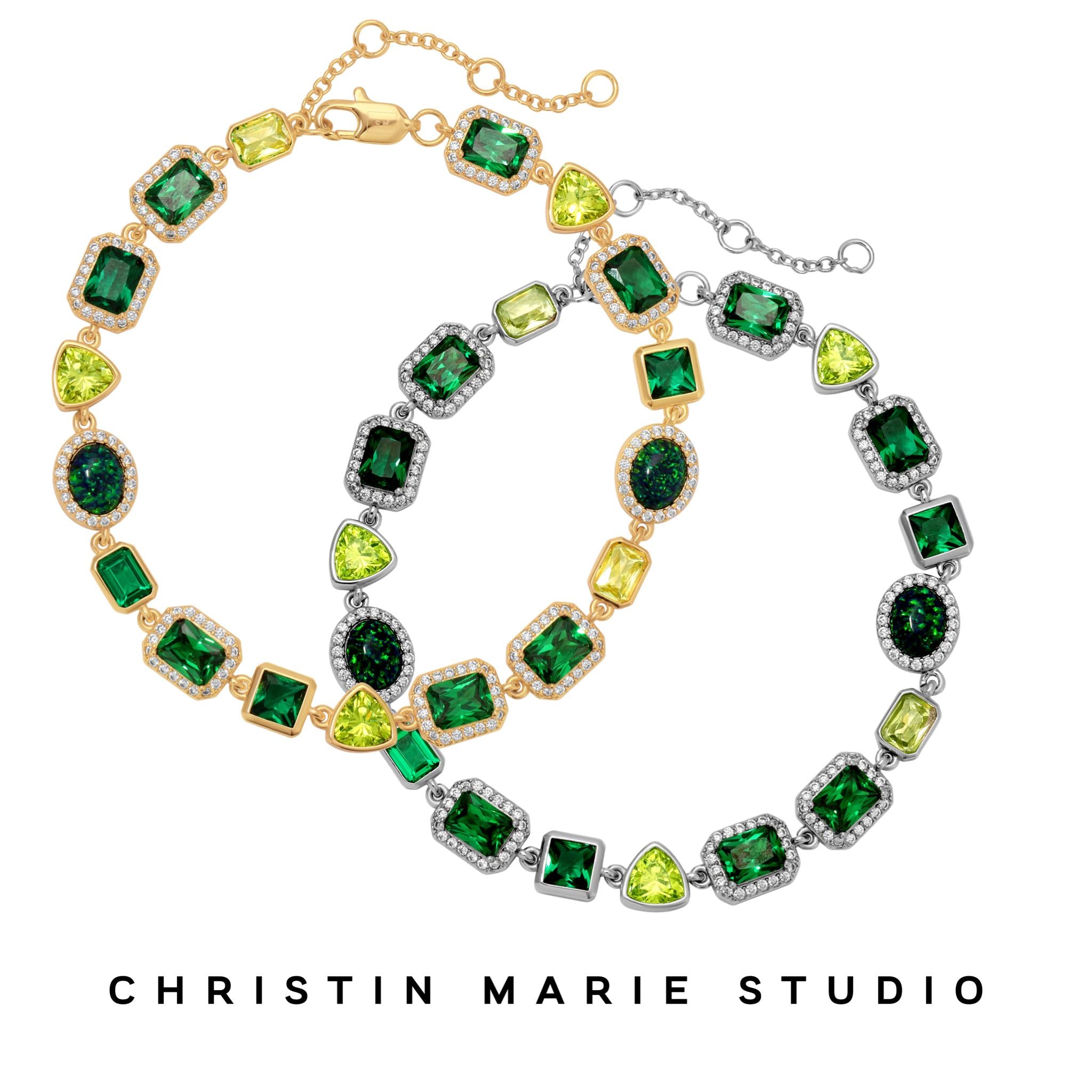 The newest addition to our Solstice Gemstone collection, this anklet epitomizes luxury and sophistication. It features our new rounded triangle shape and green-toned gemstones and opals, meticulously placed to highlight their natural brilliance. Perfect for individual wear or layering, it's a great statement piece. The anklet is adjustable by 2 additional inches. Matching necklace and bracelet sold separately.