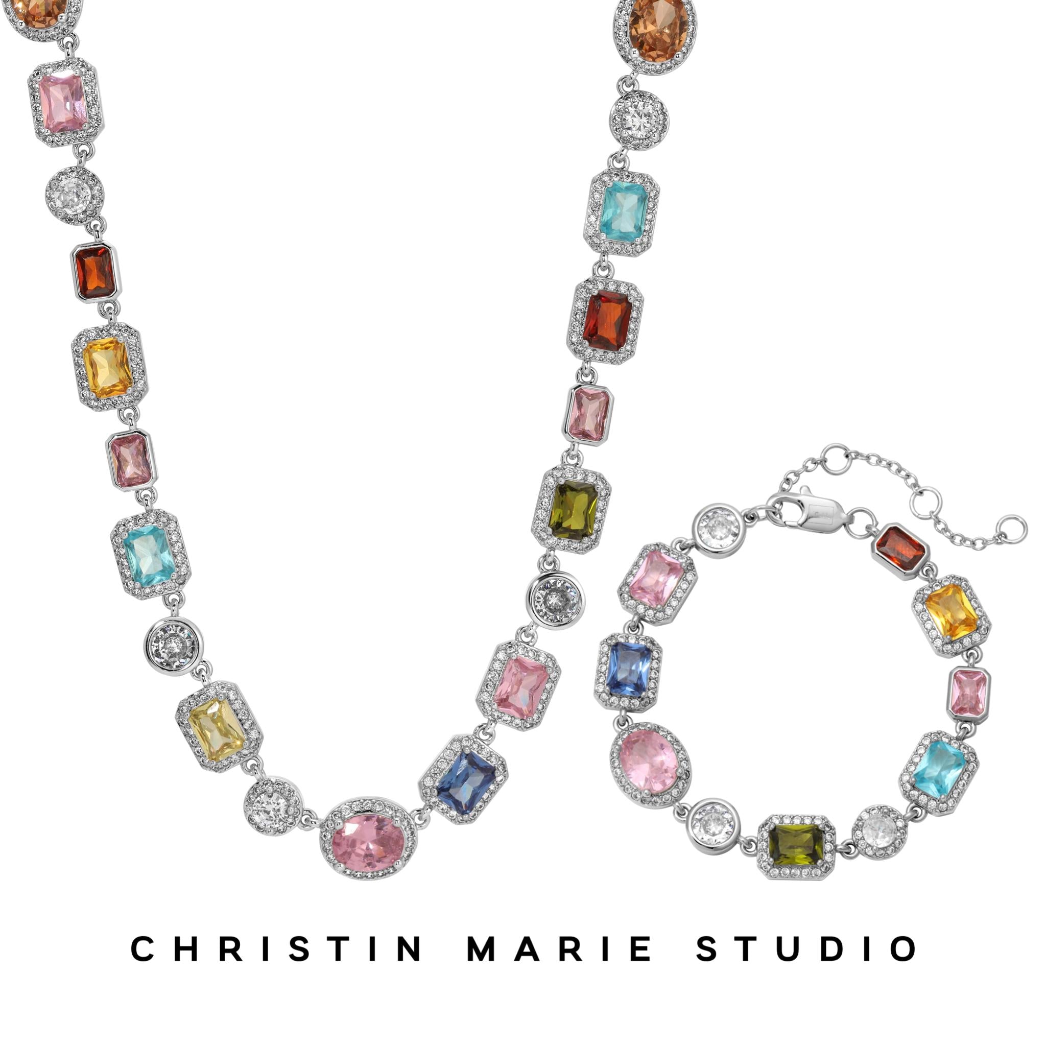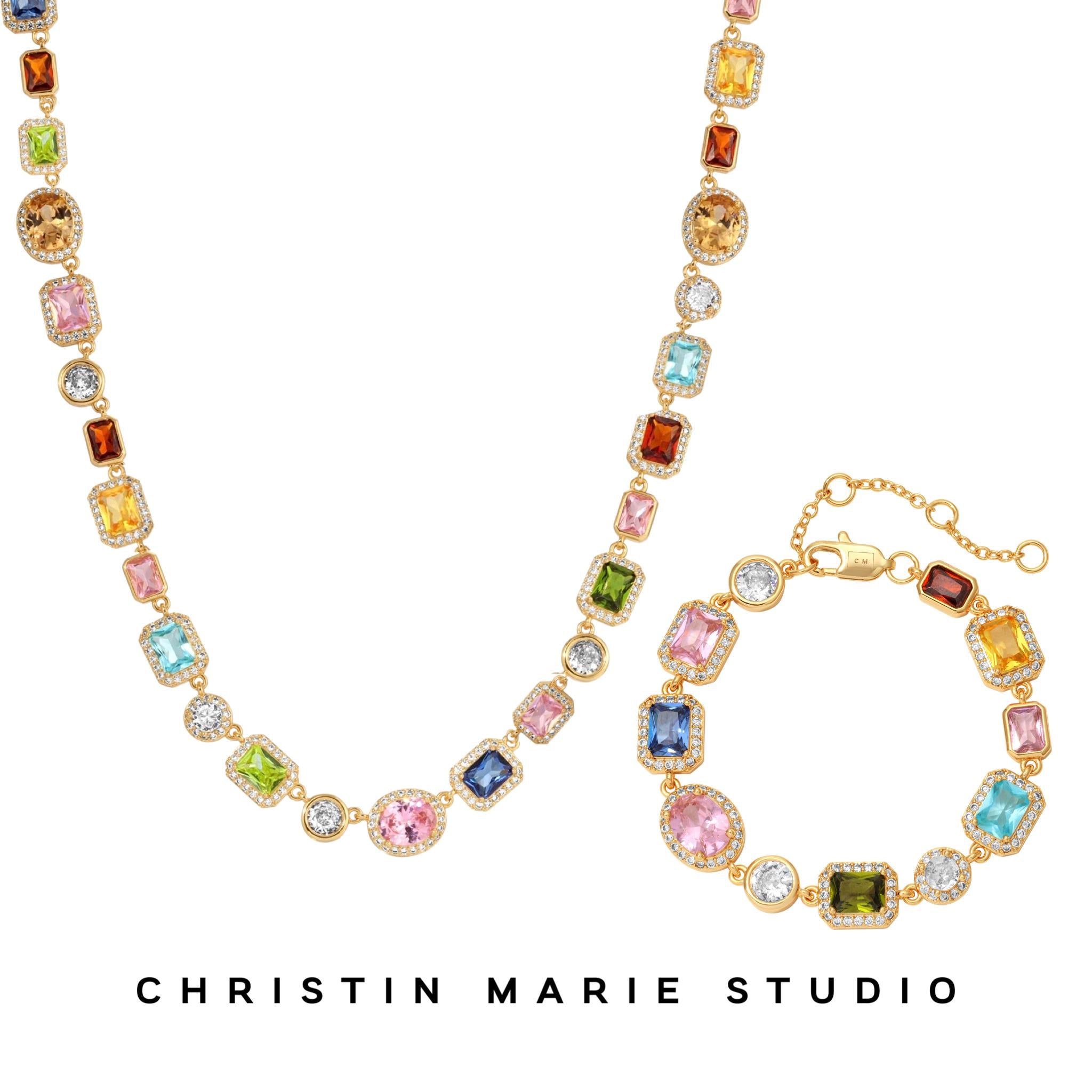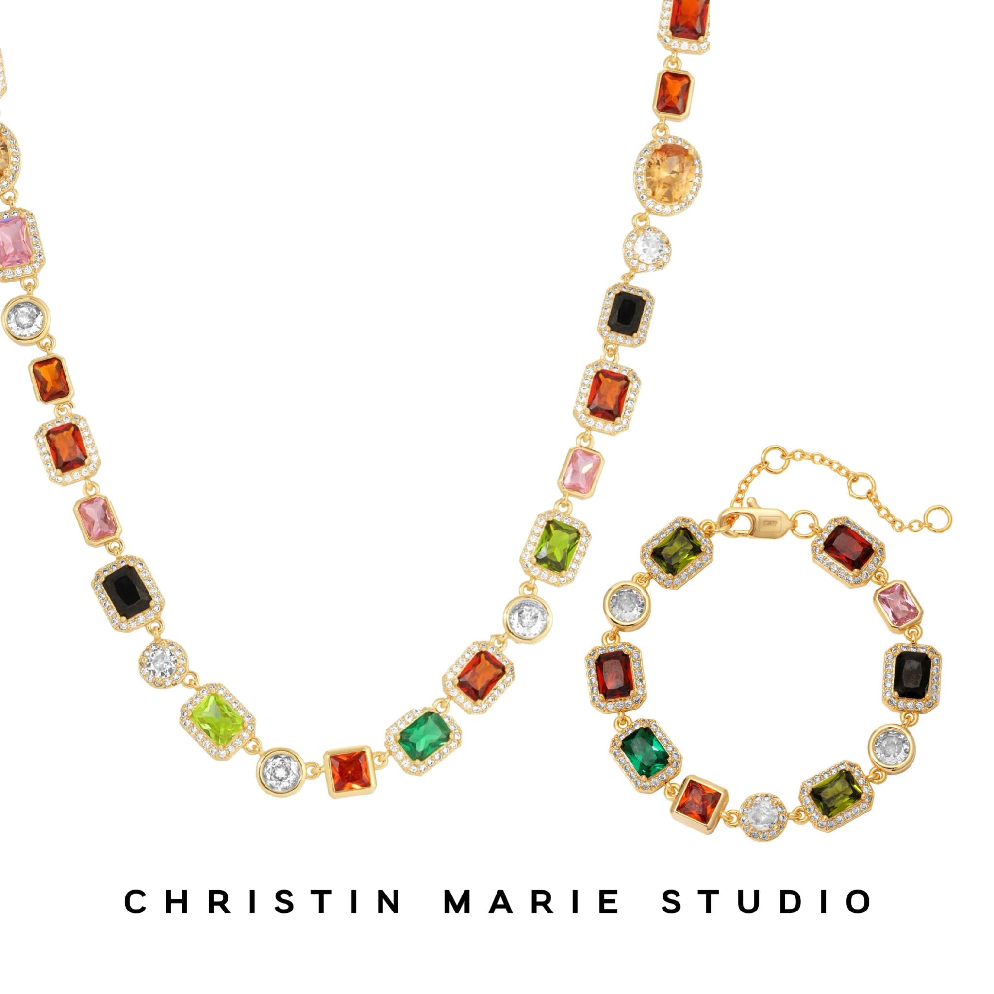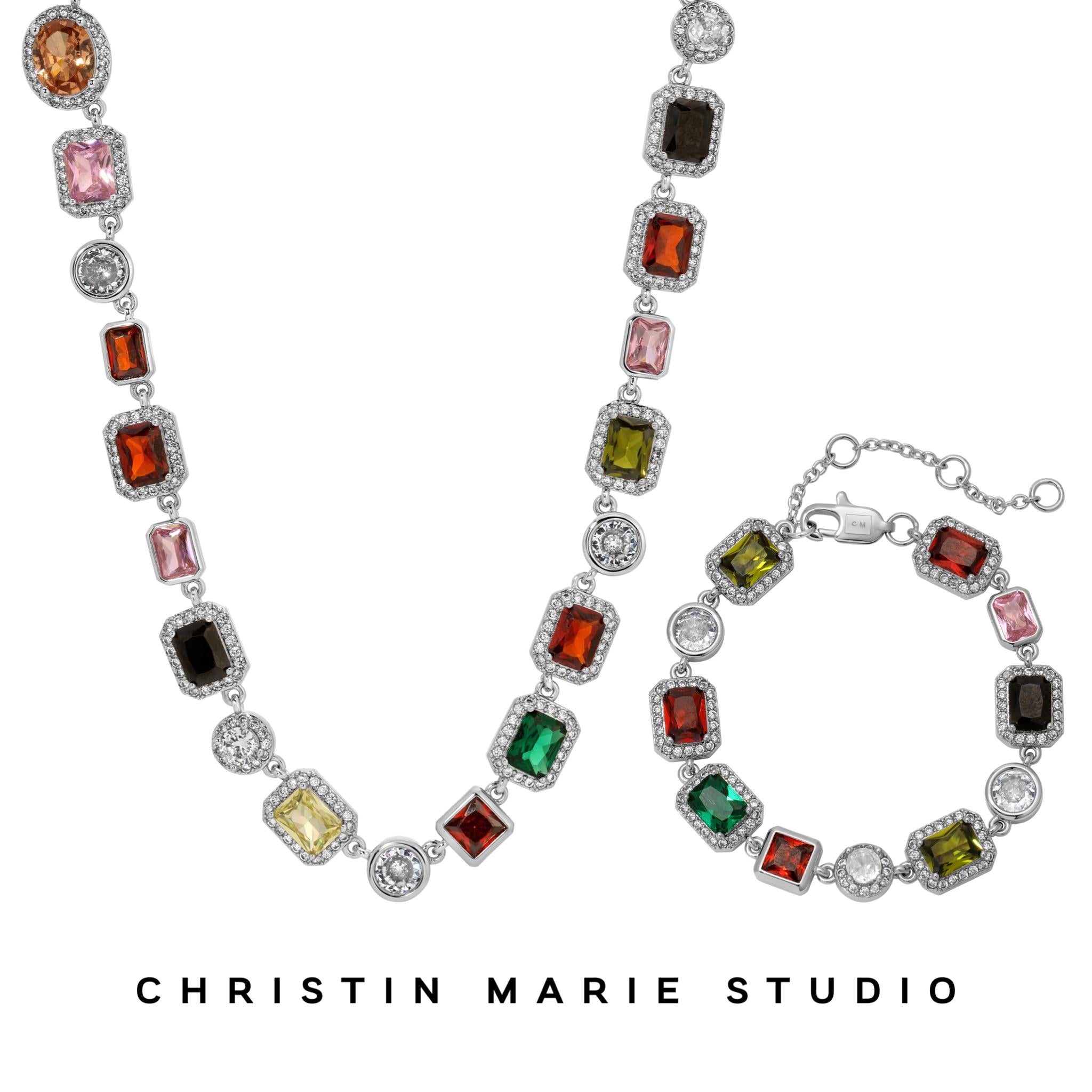 Introducing the Solstice Purely Gems bundle, a stunning set that embodies luxury and sophistication. This exclusive variation features an array of multicolored gemstones meticulously placed to showcase their natural brilliance, making it a perfect addition to any jewelry collection.