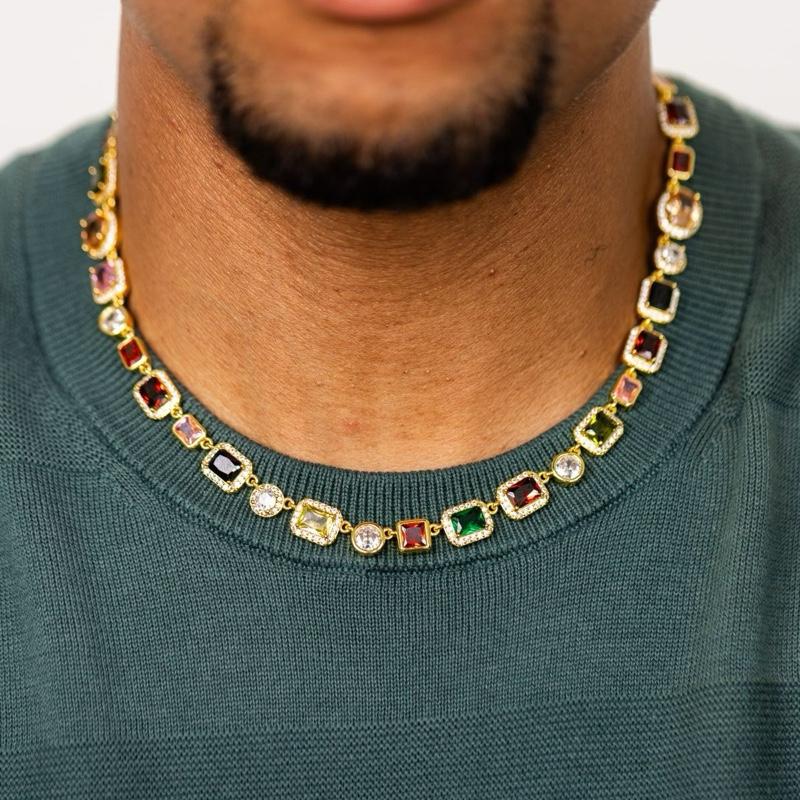 The Purely Gems Solstice Necklace is a variation of our original Solstice collection less the cross motif. An exclusive piece that epitomizes luxury and sophistication. This piece features an array of multicolored gemstones meticulously placed to showcase the gems' natural brilliance. Great for individual wear and also a great statement piece for layering.