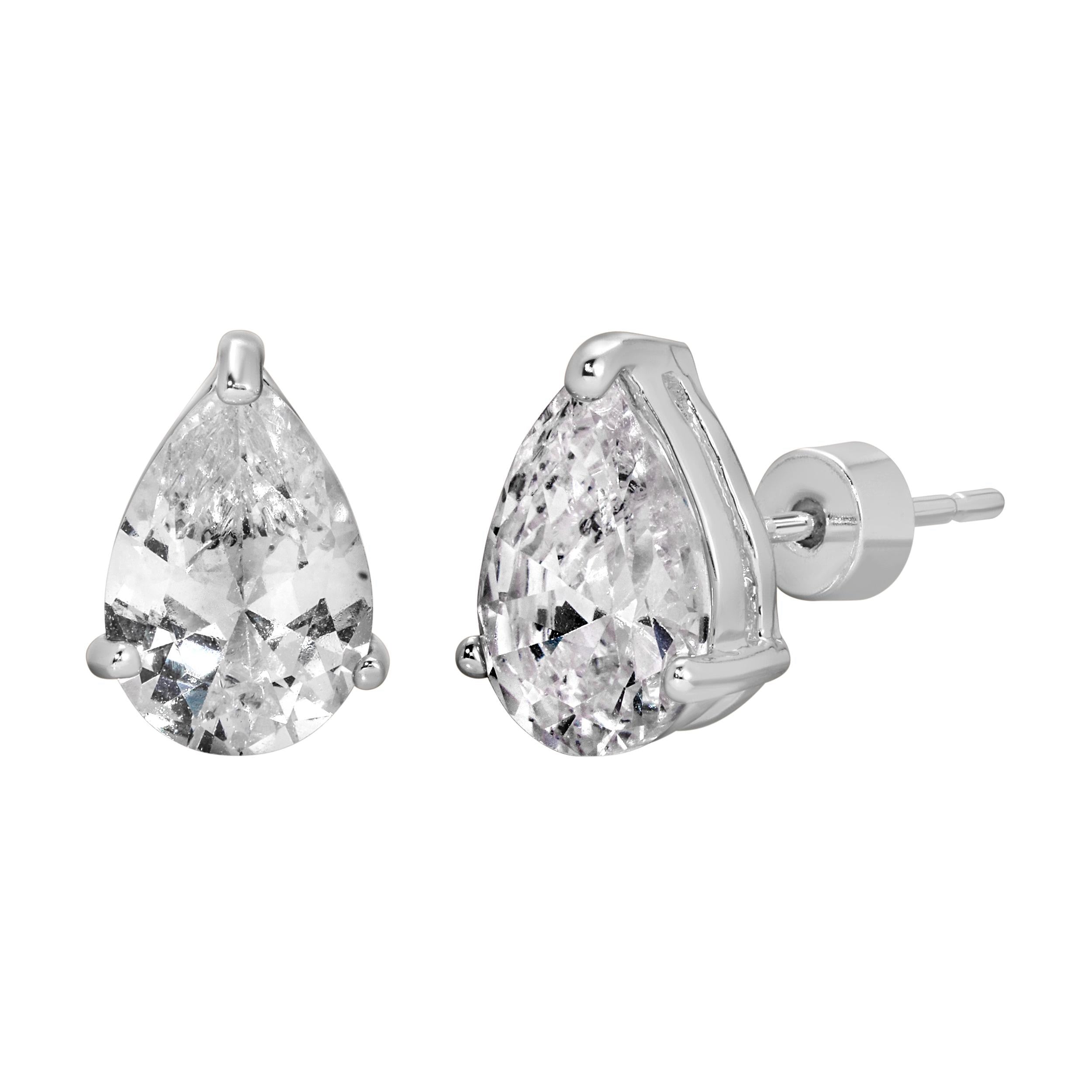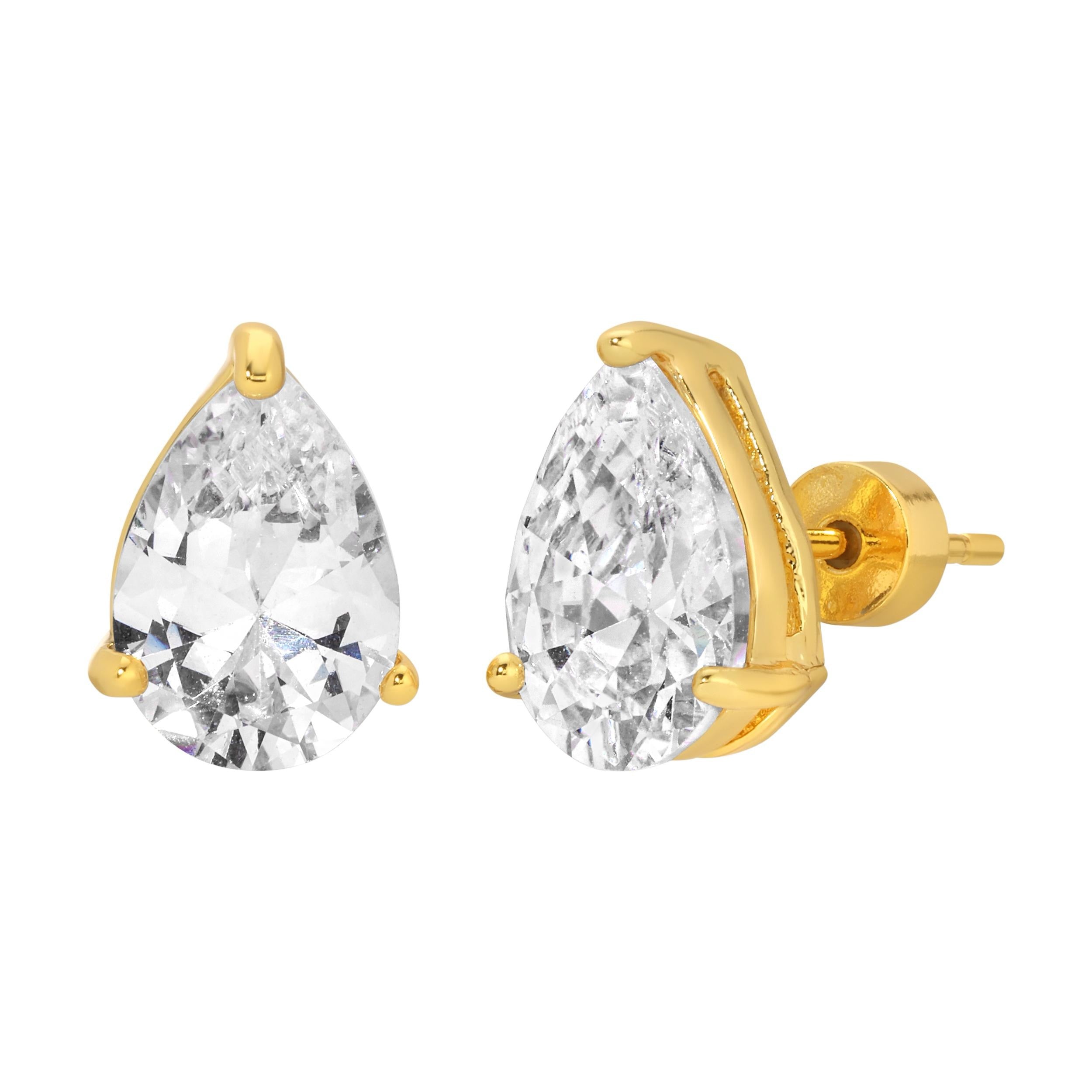 Stunning gold teardrop shaped stud earrings. High shine cubic zirconium stones with high quality 18k gold plating over brass. Smooth earring back for comfort. Add a touch of glamour to any outfit. Slightly larger than traditional stud earrings.